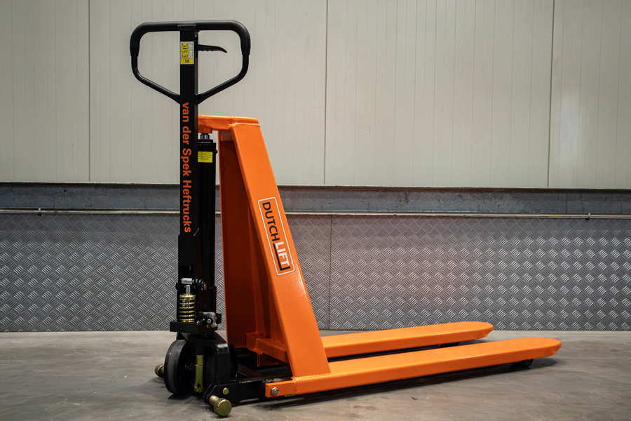 Bij Van der Spek kunt u schaarhandpallettrucks kopen vanaf € 995,-. Deze schaarhandpallettrucks heffen tot ergonomische werkhoogte. Met een maximale capaciteit van 1000 kg heft de schaarhandpallettruck tot een hoogte van 800 mm.