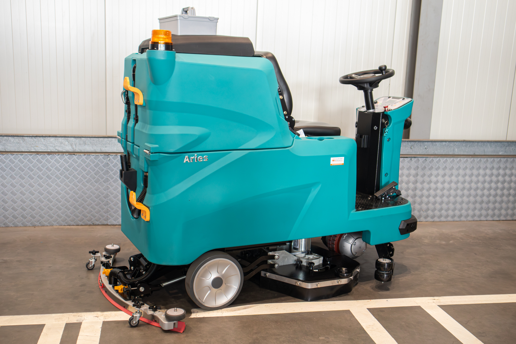 Met zijn robuuste constructie en gebruiksvriendelijke ontwerp biedt de TVX Aries 1000 een duurzame en efficiënte oplossing voor al uw reinigingsbehoeften. Deze schrobmachine combineert kracht, efficiëntie en betrouwbaarheid, en is klaar voor onmiddellijke inzet. Ook bent u snel klaar door de grote werkbreedte van 100 centimeter wat een schrobcapaciteit oplevert tot wel 7.040 m2/uur!